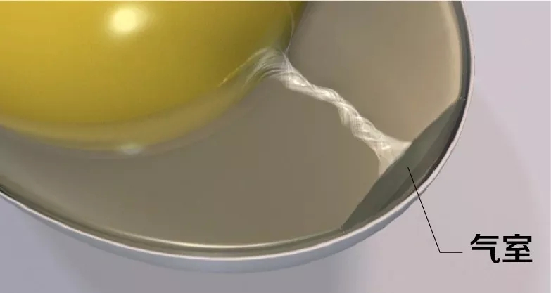 剛排出體外的雞蛋還差最后一個關(guān)鍵部位,氣室。蛋雞泄殖腔溫度41.5℃左右,環(huán)境溫度18-30℃之間,雞蛋在外部環(huán)境中遇冷收縮,形成氣室。